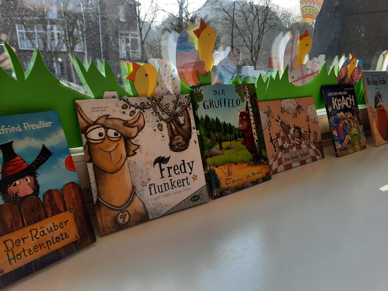 In diesem Jahr konnten pandemiebedingt leider keine Autorinnen und Autoren unsere Schule besuchen. Dennoch beschäftigten sich alle Klassenstufen ausführlich mit dem Thema „BUCH“. Das Lesen stand noch stärker im Vordergrund. Natürlich wurden die Lieblingsbücher mitgebracht, sie wurden vorgestellt, es wurde vorgelesen und getauscht. So schmückten viele Bücher die Fensterbänke der Klassen, welche oftmals als Tauschplatz dienten: Von Räuber Hotzenplotz oder der klugen Krähe bis hin zu dem Grüffelo oder dem Sams – die Auswahl war (fast) besser als in der Buchhandlung.